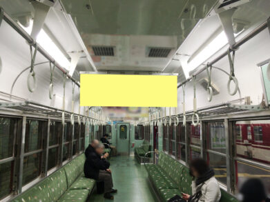電車内の中央上部は、その掲載位置の高さから乗客に遮られることなく目に留まりやすい注目度の高いスペースです。 特に新商品やサービス周知・キャンペーン等に適しており、山陽電車および神戸電鉄ユーザーへ向けて広く情報提供を行なえます。