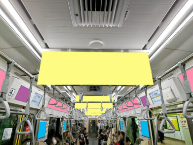 電車内の中央上部は、その掲載位置の高さから乗客に遮られることなく目に留まりやすい注目度の高いスペースです。 特に新商品やサービス周知・キャンペーン等に適しており、都営ユーザーへ向けて広く情報提供を行なえます。