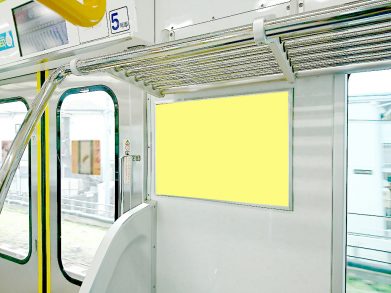 ドア横部分は乗客が集まりやすいエリアかつ目線の高さにある為、注目率・到達率ともに高い効果が期待できます。また額面に入れた状態で掲載する事から広告イメージが良く、新商品や新サービスの周知に利用されるケースが多いメディアです。