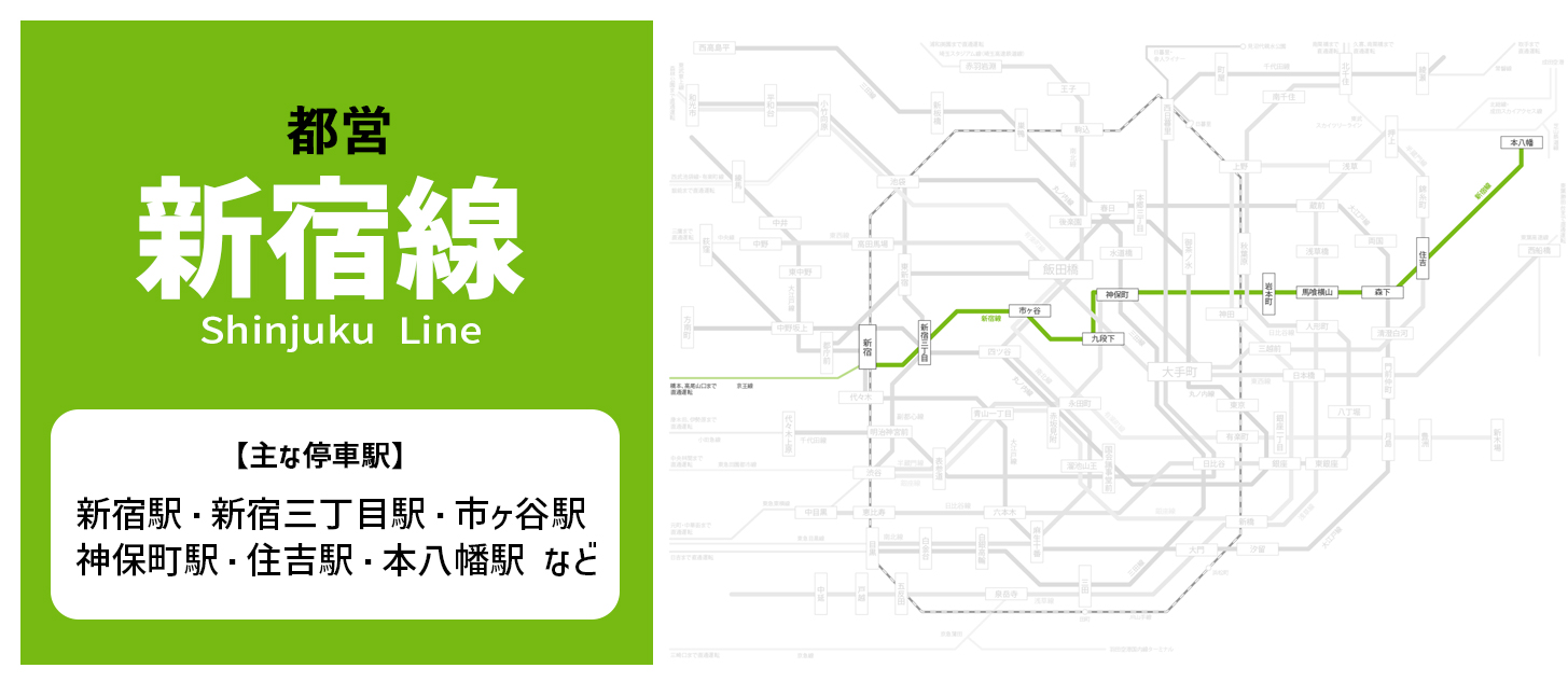 新宿駅・新宿三丁目駅・市ヶ谷駅・神保町駅・住吉駅・船堀駅・本八幡駅 など