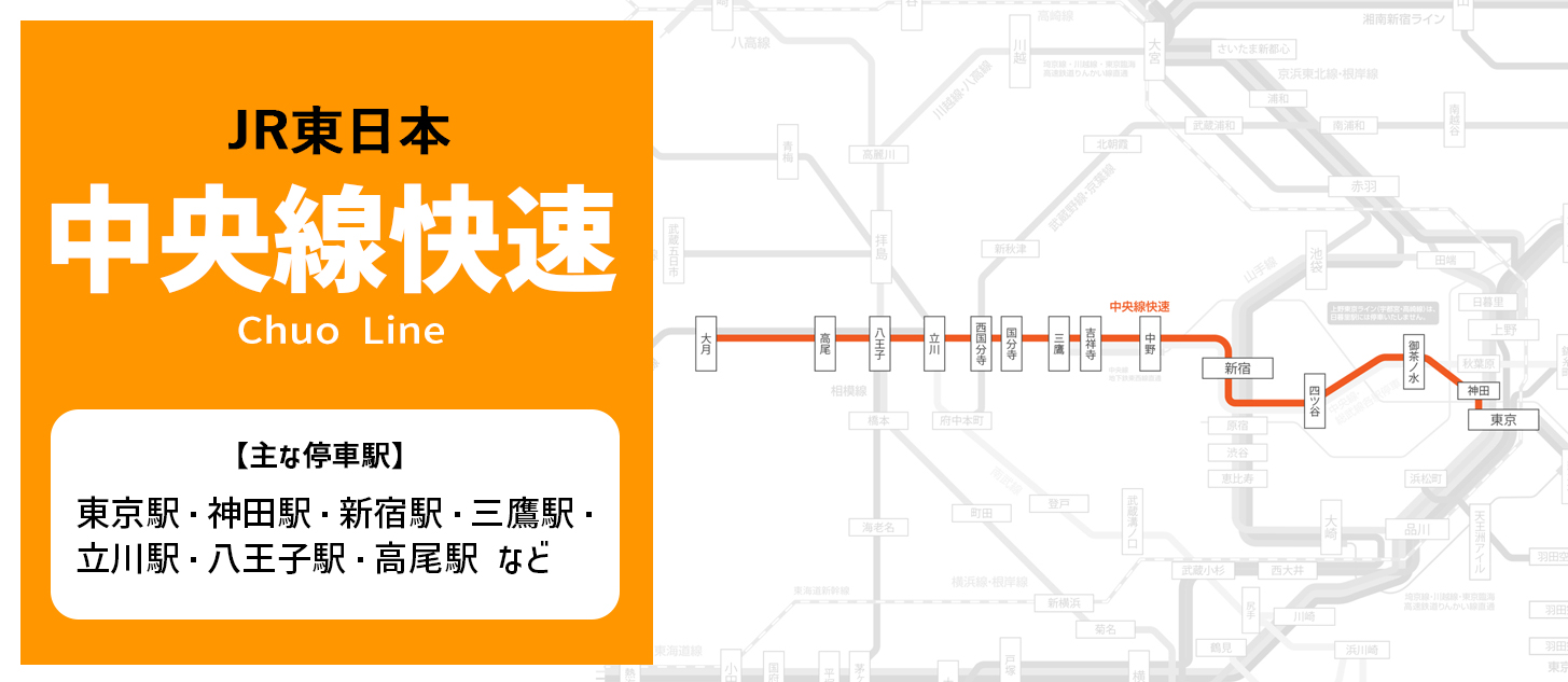東京駅・神田駅・御茶ノ水駅・新宿駅・中野駅・三鷹駅・国分寺駅・立川駅・八王子駅・高尾駅 など