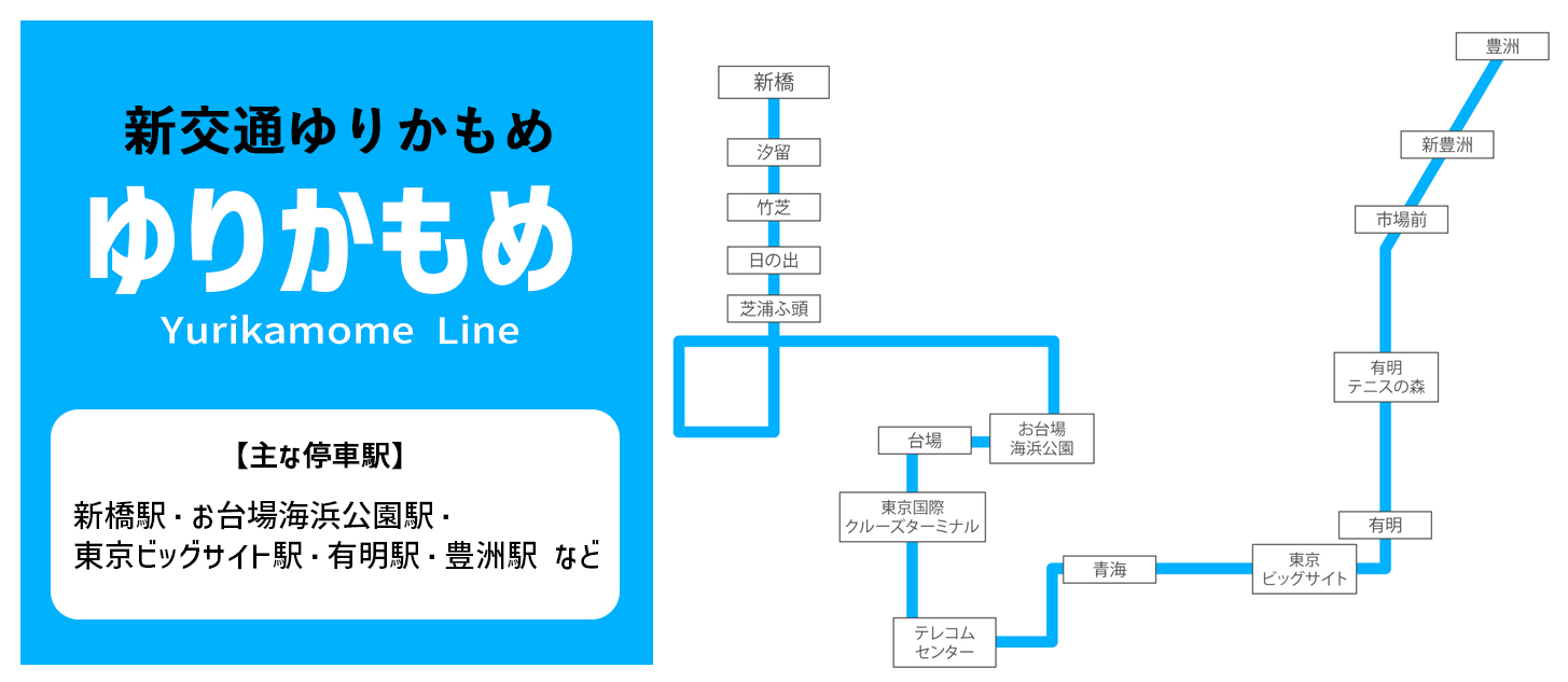 新橋駅・お台場海浜公園駅・テレコムセンター駅・東京ビッグサイト駅・有明駅・豊洲駅 など